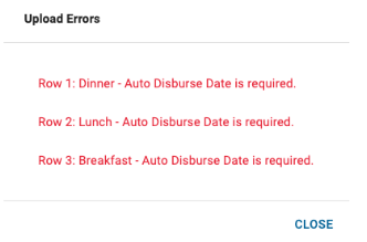 *If errors are found during the file upload, a pop-up will appear, specifying the row number and the error. You must correct these errors and re-upload the affected allotments.
