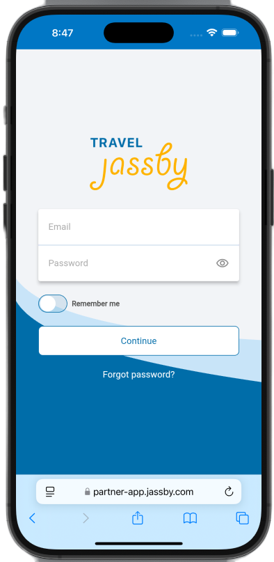 - The Jassby Partner App is web-based, which means you can access it simply by opening the site in your mobile browser.