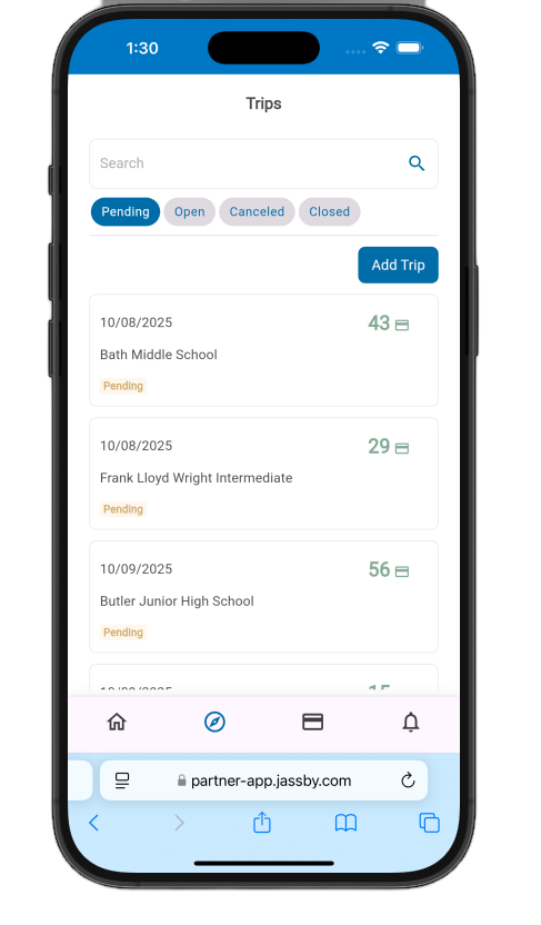 The Partner UI Mobile App gives you full functionality on the go. You can manage allotments, replace lost cards, and check the status of Trip Card orders anytime, anywhere.